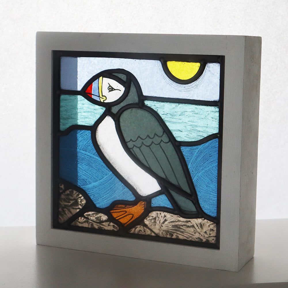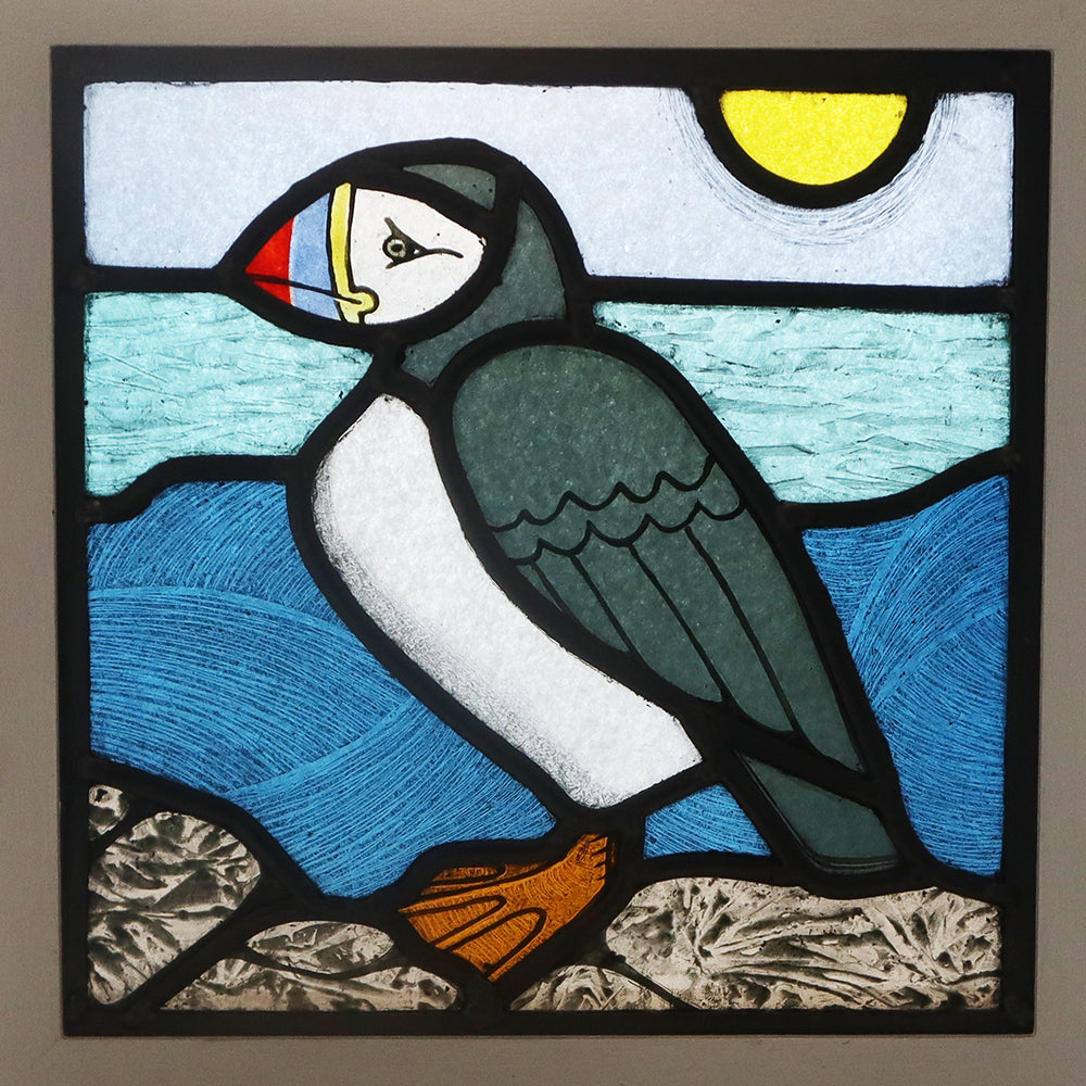 Home › Glass › Puffin in Stained Glass, Oriel Hicks