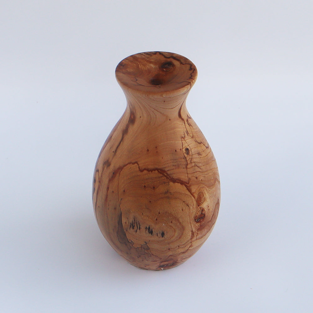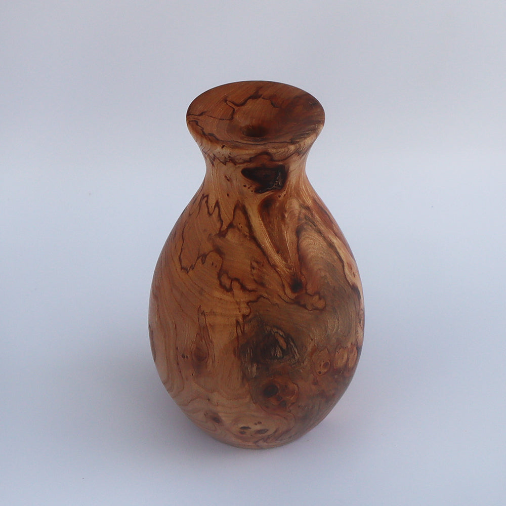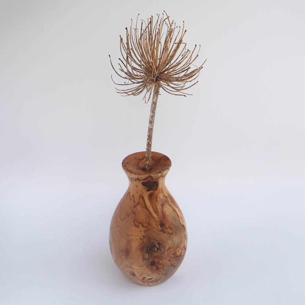 Decorative, wooden dried flower vase made from elm, found on the Isles of Scilly.