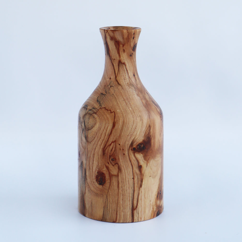 Decorative, wooden dried flower vase made from elm, found on the Isles of Scilly.