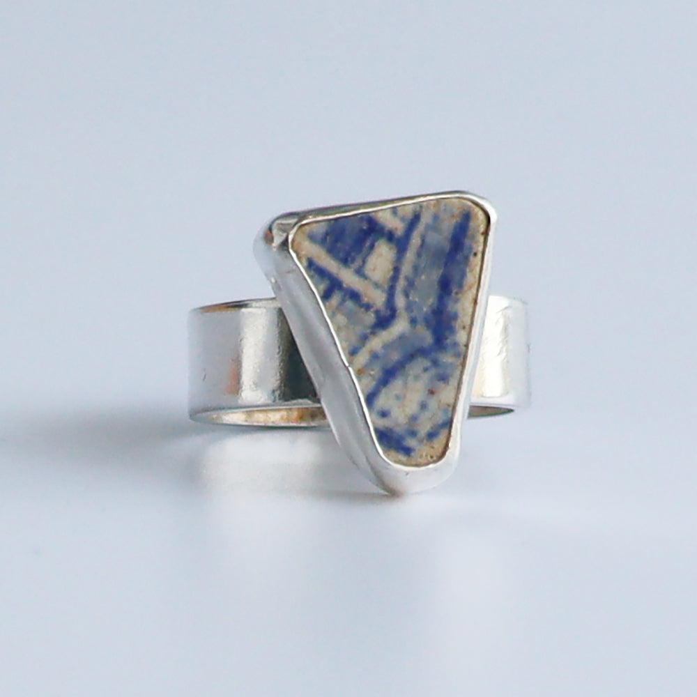 Pottery ring on a wide, adjustable band to fit a range of finger sizes.