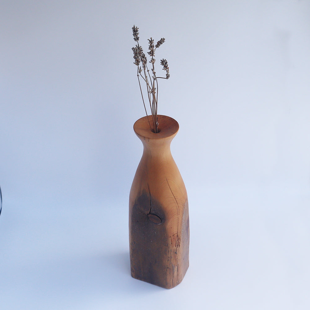 Decorative, wooden dried flower vase made from reclaimed wood, found on the Isles of Scilly.
