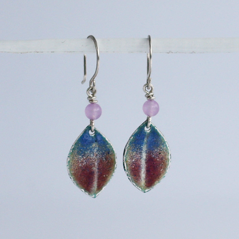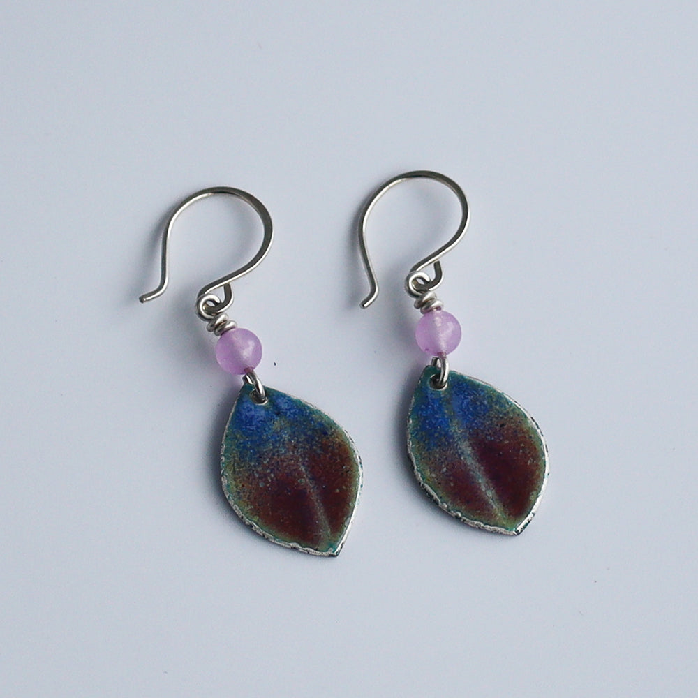 Enamelled Silver Earrings (Blue Pink Leaf)