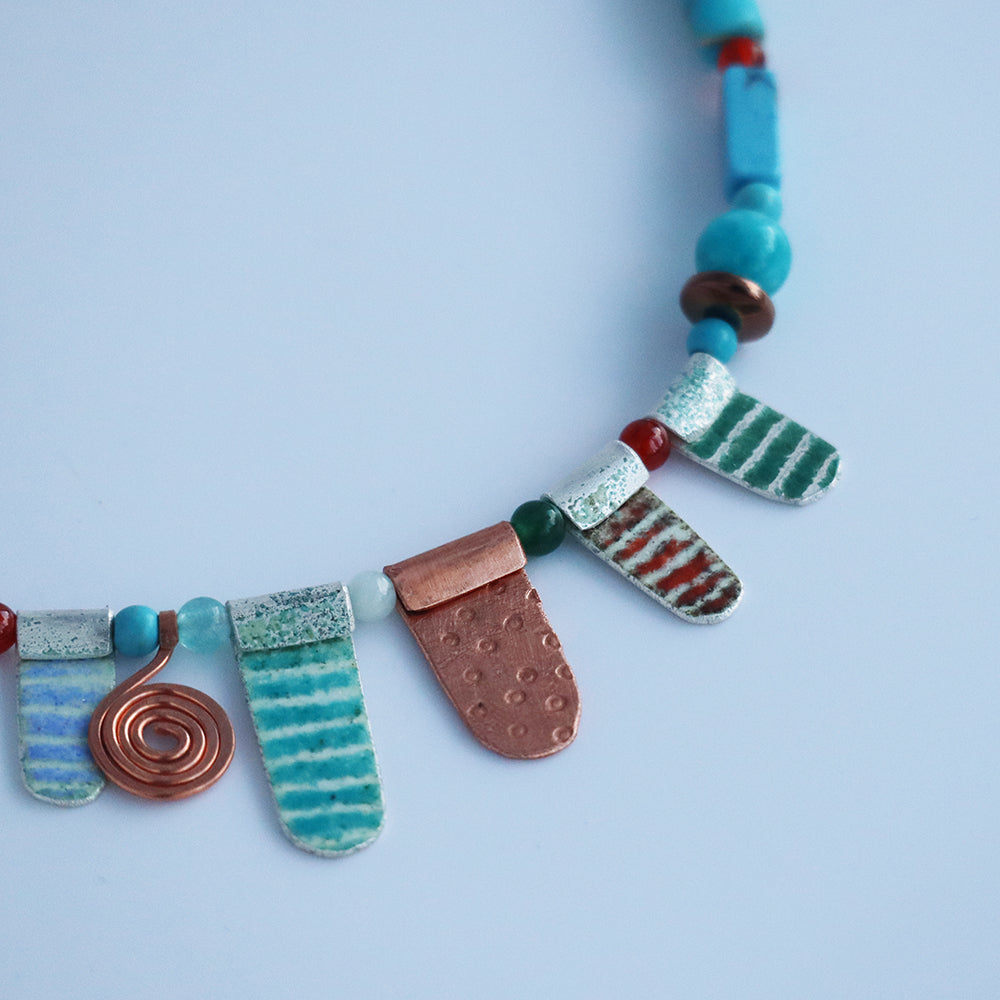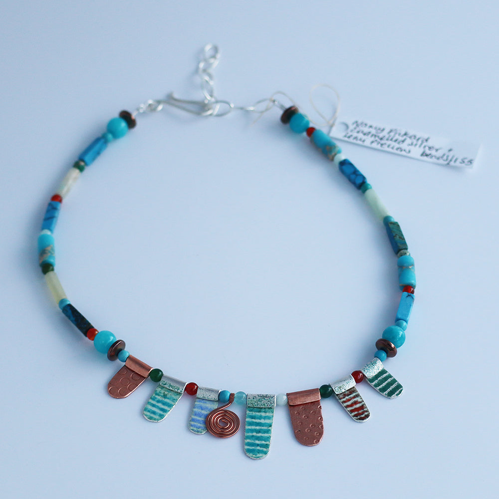 Handcrafted enamelled silver necklace with semi-precious beads by Nancy Pickard.