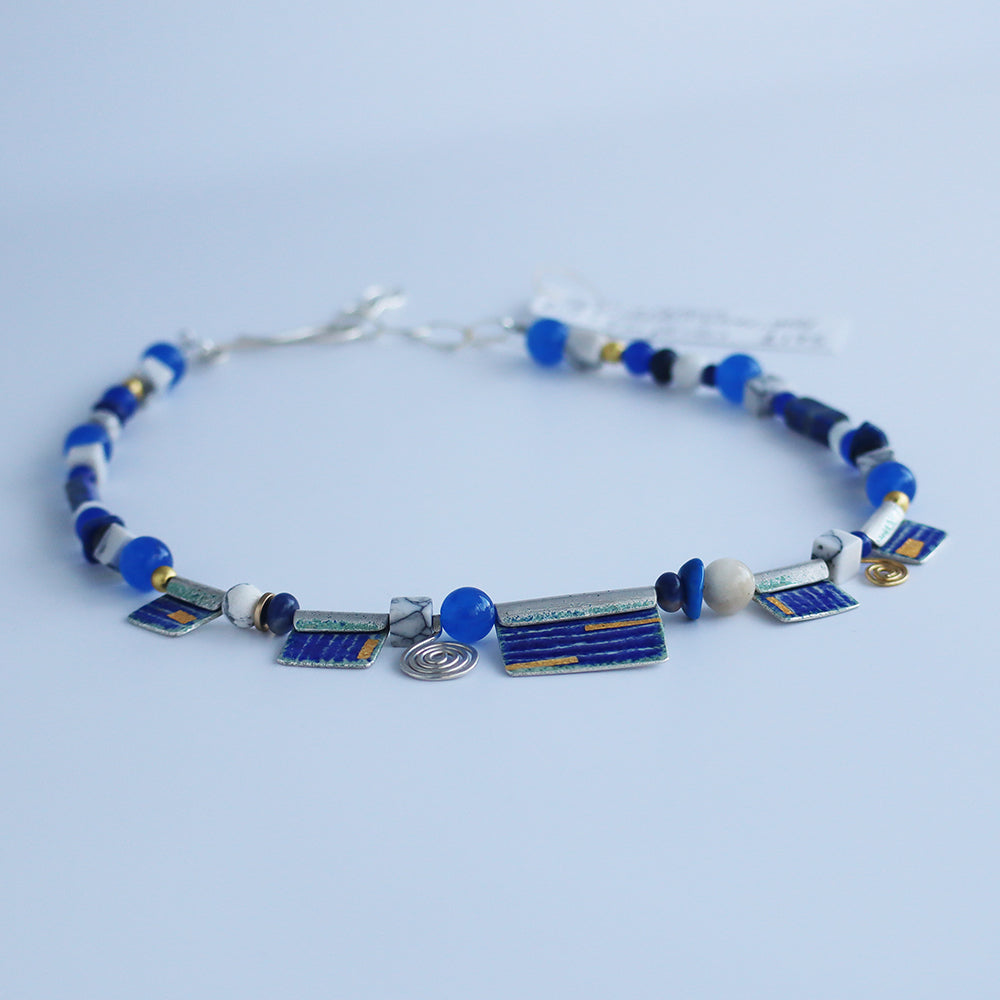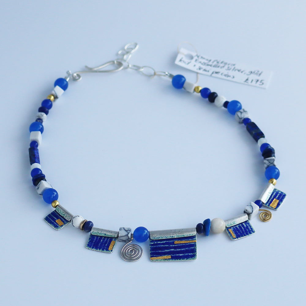 Home › Enamelled Silver Necklace with Gold Foil and Semi-Precious Beads IV