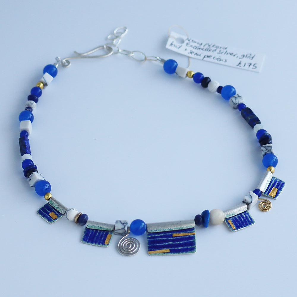 Handcrafted enamelled silver necklace with semi-precious beads by Nancy Pickard.