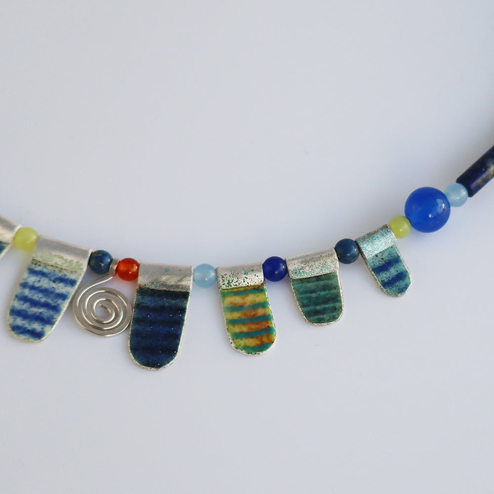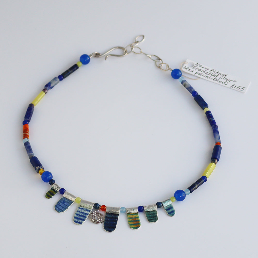 Handcrafted enamelled silver necklace with semi-precious beads by Nancy Pickard.