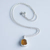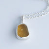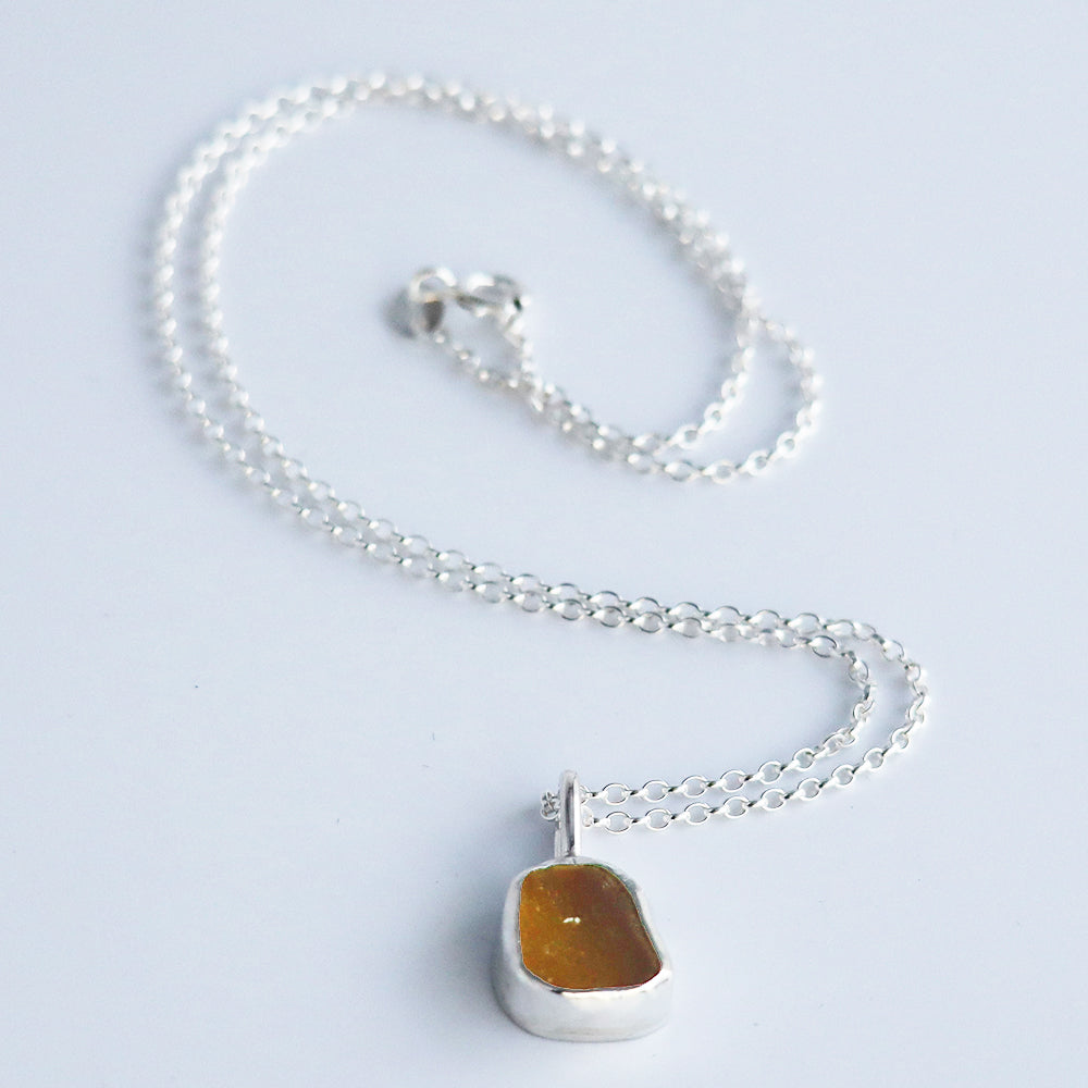 Yellow sea glass necklace, wrapped in silver and presented on a silver chain.