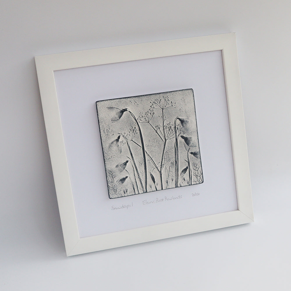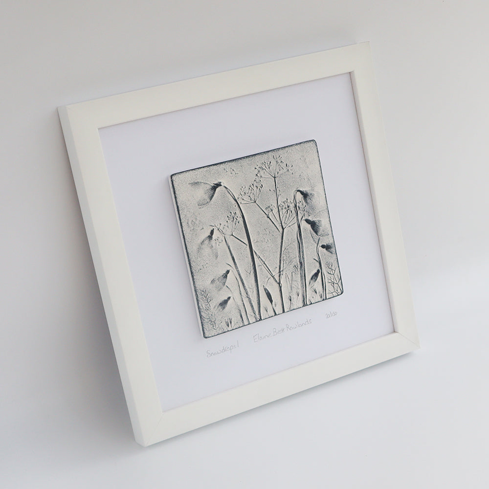 Plaster cast of snowdrop flowers by Elaine Brett Rowlands.